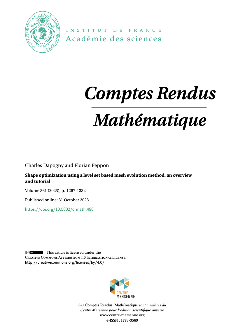 Article in the "Gazette des mathématiciens" | Large-audience presentation in prep. school | Review chapter about level set based shape optimization |